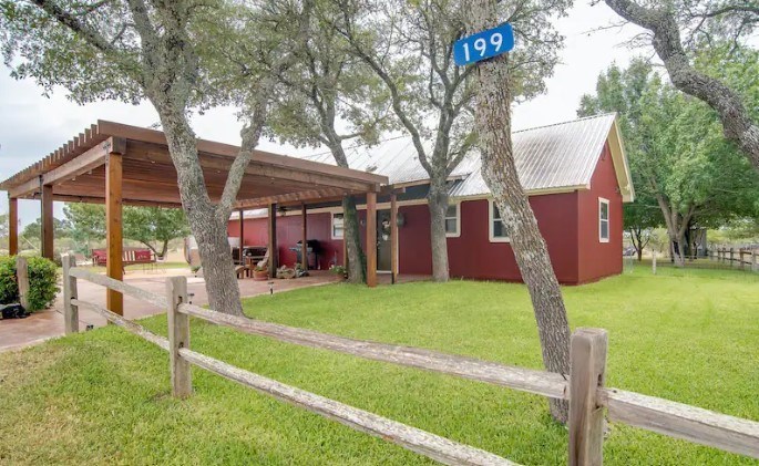 This is a Hill Country guest house stay for 4 guests for 2 nights in beautiful Fredericksburg Texas. The home is a 2 bedroom, 2 bath home with fully stocked kitchen, spacious dining room and living room with fireplace and large glass windows looking out onto open acreage with wildlife and birds all around. There are also 2 porches: one screened porch with dining table and one with a fire pit and porch swing alongside a 6 person hot tub with lights and fountains! Located just 3 miles from downtown Fredericksburg and local wineries. Reservations required and recommended to make as soon as possible due to the guest house popularity as a weekend retreat. There are dates available weekdays or weekends for May, June, July, or August 2023 (Holidays excluded). Expires September 1, 2023. Address: 199 Galle Holt Rd, Fredericksburg, TX 78624 Contact information: (830) 456-2430 jubileehaus199@gmail.com