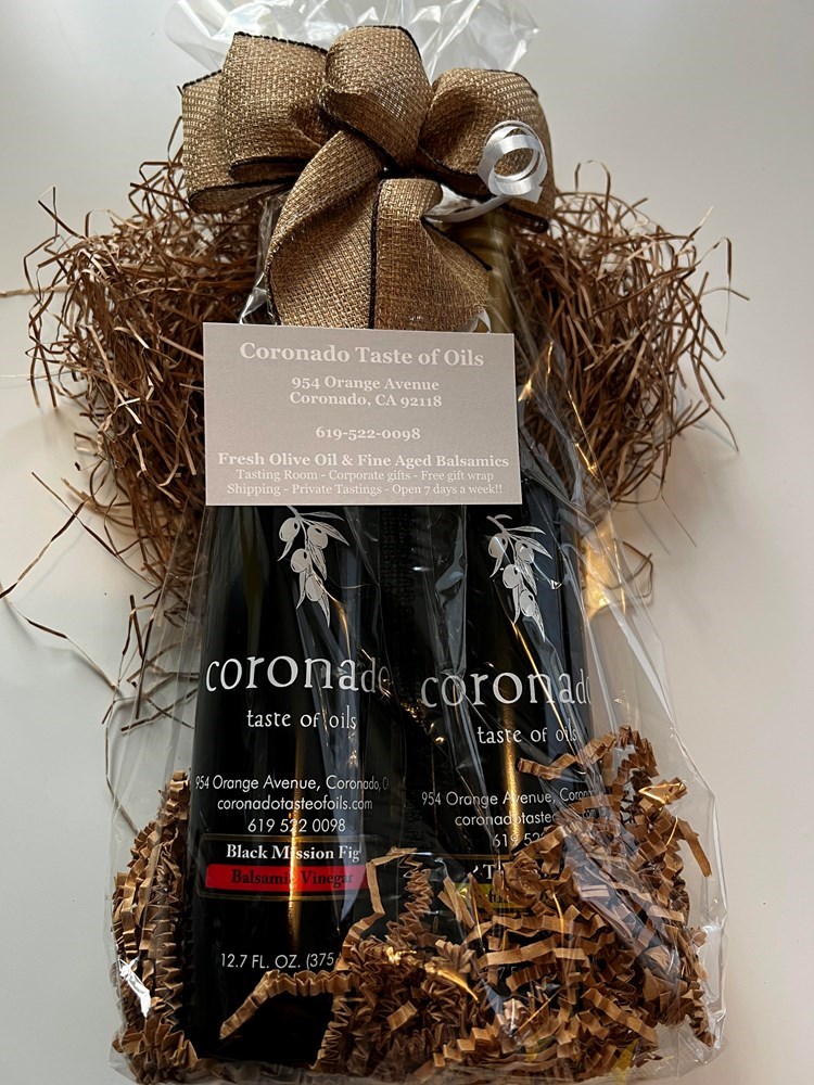 Coronado taste of oils- A gift set of olive oil and balsamic vinegar *Tuscan herb Infused olive oil (375 ml) *Black mission fig balsamic vinegar (375 ml)