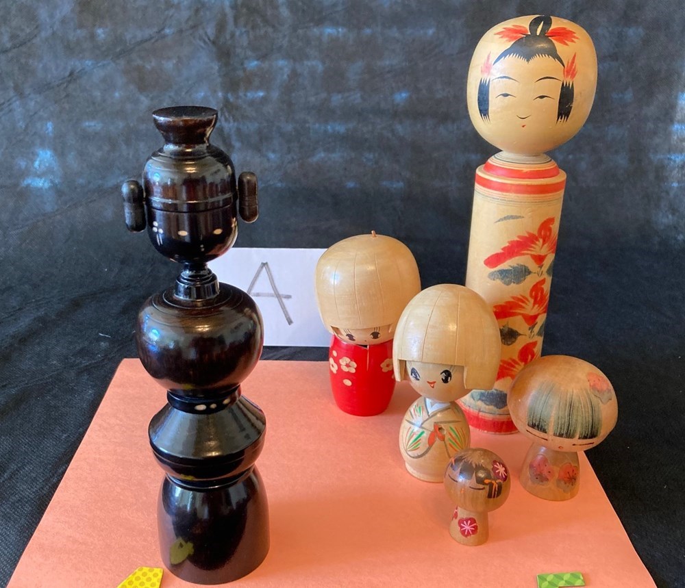 Vintage wooden Kokeshi dolls; range 2"-9" tall; (IMG_3104.jpg)