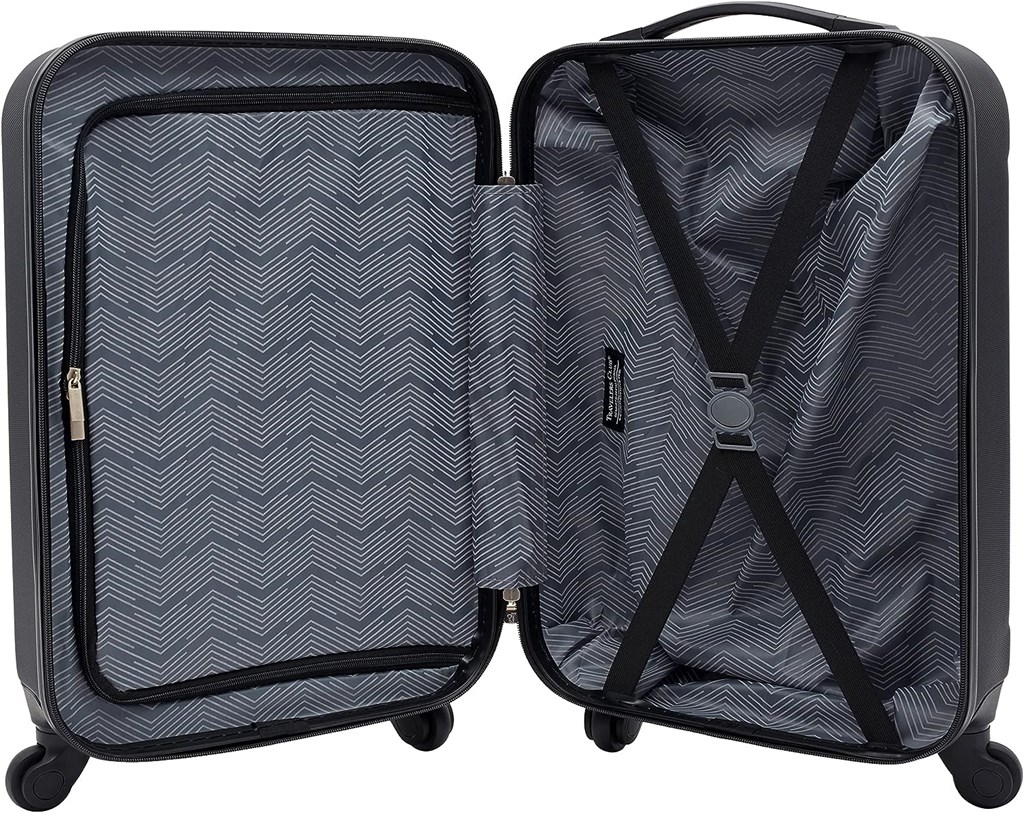 20" 4 Wheel Spinner Carryon Luggage. Body (without wheel) Dimensions: 19½ in. H x 13½ in. L x 8½ in. W. Product Weight: 6 lbs. Made of ABS: Durable and lightweight hard shell 4 Spinning Wheels for Smooth Mobility and Ease on Wrist for Travelers Fully Lined Interior with Pockets, Compression Straps, and Dividers for Easy Packing and Organizing Top Carry Handle and 4 Side Rubber Studs for Laying on Ground