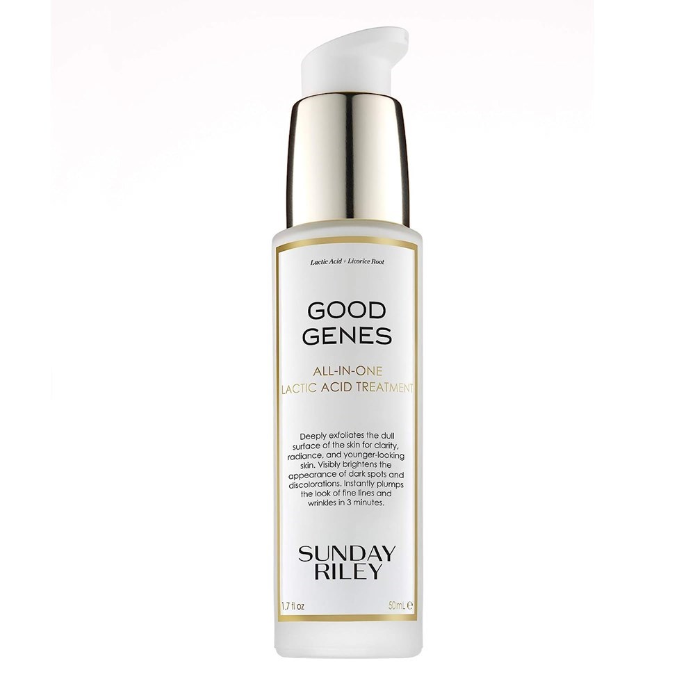 (2) 1.7 fl oz Bottles Of Good Genes All In One Lactic Acid Treatment With Licorice Root Sunday Riley’s Good Genes All-In-One Lactic Acid Treatment is the go-to product for radiant, glowing skin. It hydrates and gently exfoliates away dead skin cells to reveal a softer, smoother complexion. Clinically proven to immediately and significantly plump the look of fine lines and boost radiance in just 3 minutes. Sulfate-Free, Paraben-Free, Gluten-Free, Soy-Free, Phthalate-Free, Fragrance-Free, Vegan.