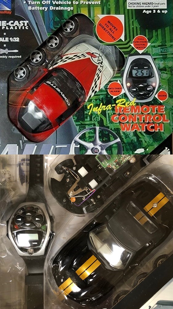 NewRay 2002 Black Shelby Series Infra-red remote control watch Original box included NewRay 1998 Red Chevrolet Corvette Infra-red remote control watch Original box not included