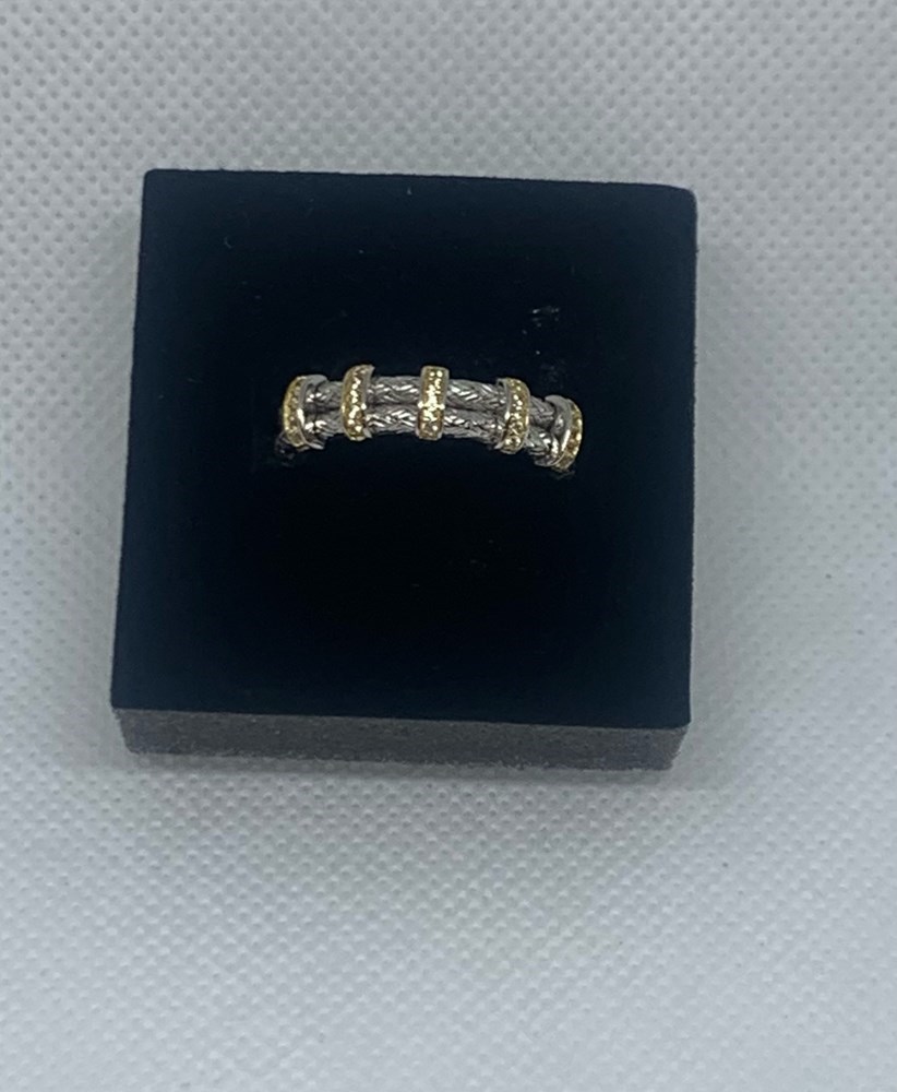 Wheat Design Sterling Silver Band Ring, size 9 set with Cubic Zirconia Stones with Gold over Silver accents.