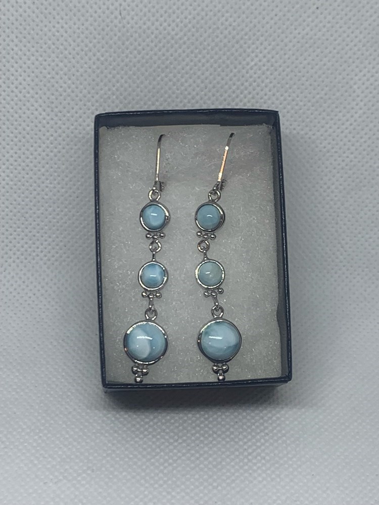 Sterling Silver Earrings set with Larimar Stones. For pierced ears.