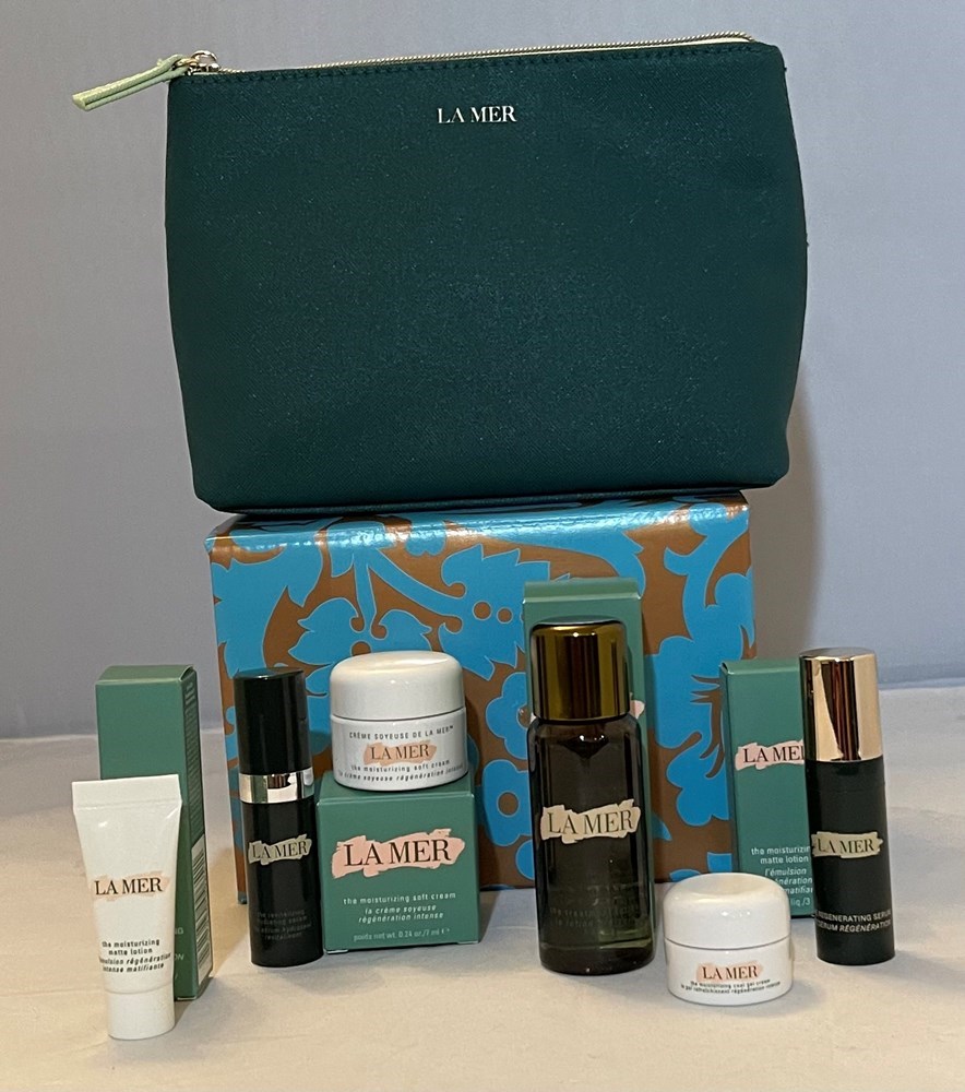 A Set Of 10 Moisturizing Skin-Care Products From La Mer, Plus A Zip-Top Cosmetics Bag Perfect For Traveling.