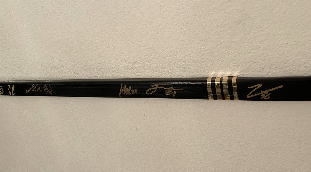 VGK STANLEY CUP TEAM AUTOGRAPHED HOCKEY STICK and #27 SIGNED PUCK 2021-2022 SEASON