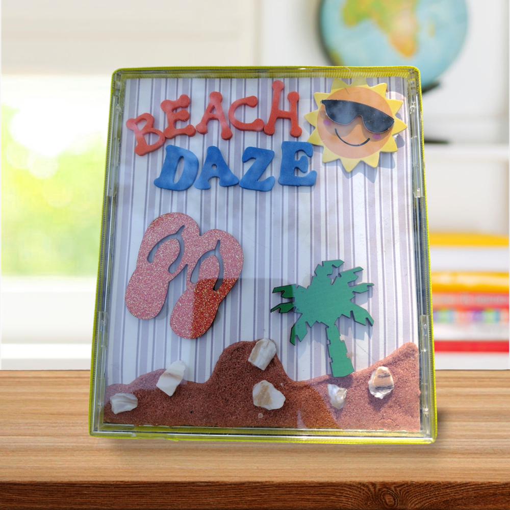 Dive into the serene allure of the coast with our exquisitely crafted beach-themed collage, meticulously enclosed within a sustainably curated repurposed DC case. This one-of-a-kind art piece captures the essence of tranquil beachside moments, while each element of the collage tells a unique story of sunlit shores and ocean whispers, making it not just a visual delight but an immersive experience that transports you to your own personal shoreline sanctuary.