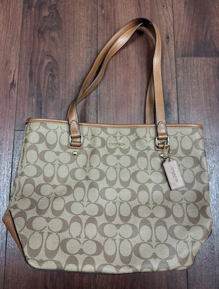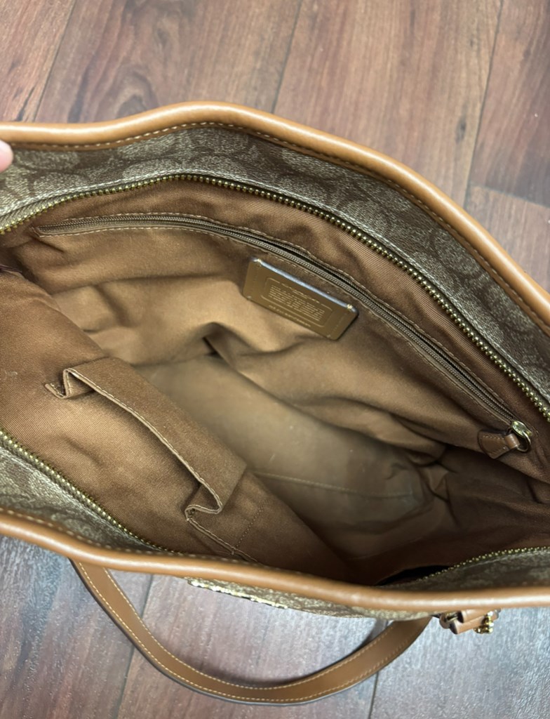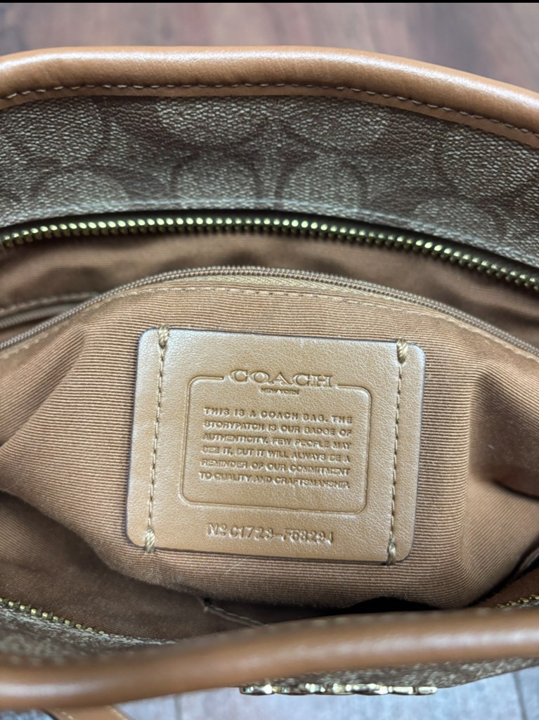 An Authentic Coach Bag with pockets on the inside and an authenticated Coach Stamp on the side. In very good condition.