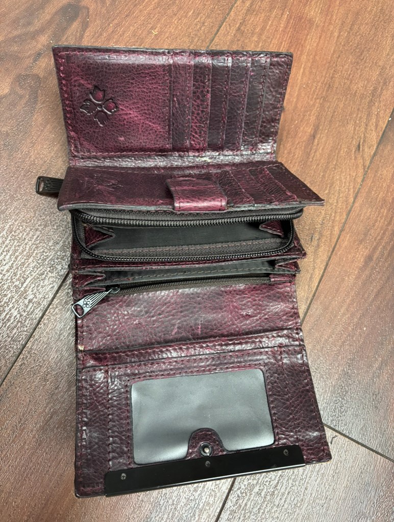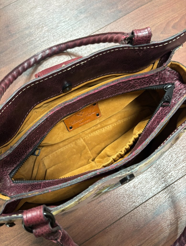 This real Patricia Nash Bag comes with a wallet and has lots of compartments and pockets on the inside. It’s genuine leather and has velvet interior. In very good condition.
