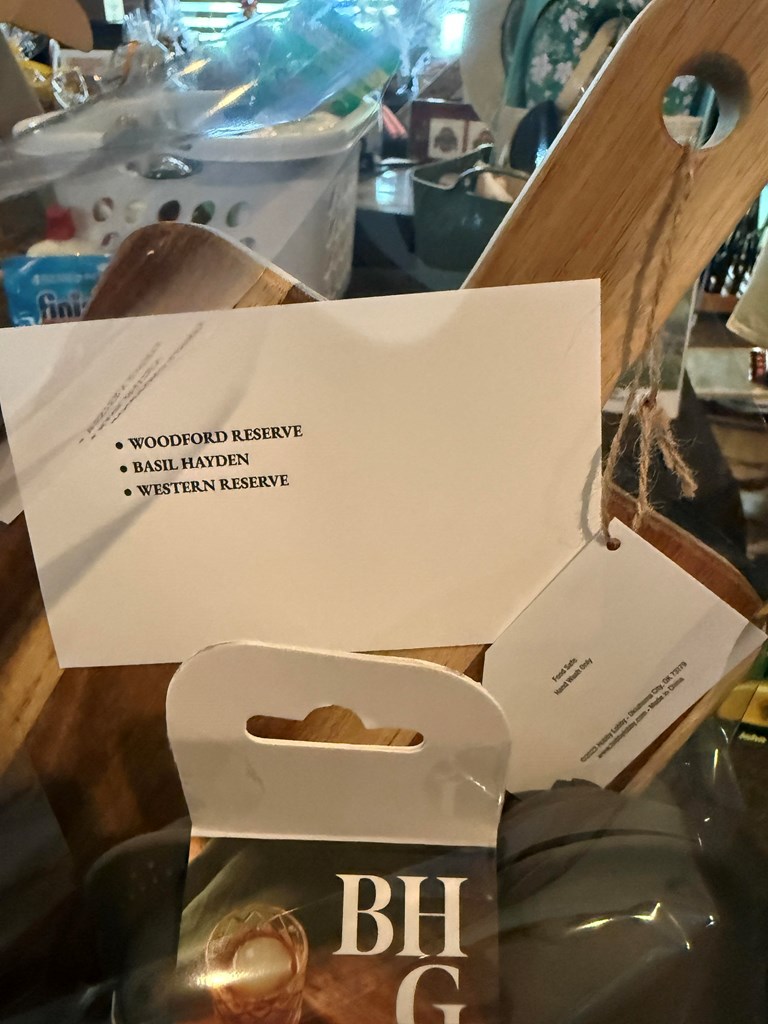 Tapas basket with snacks and alcohol Woodford Reserve Basil Hayden Western Reserve Retail Value: $150