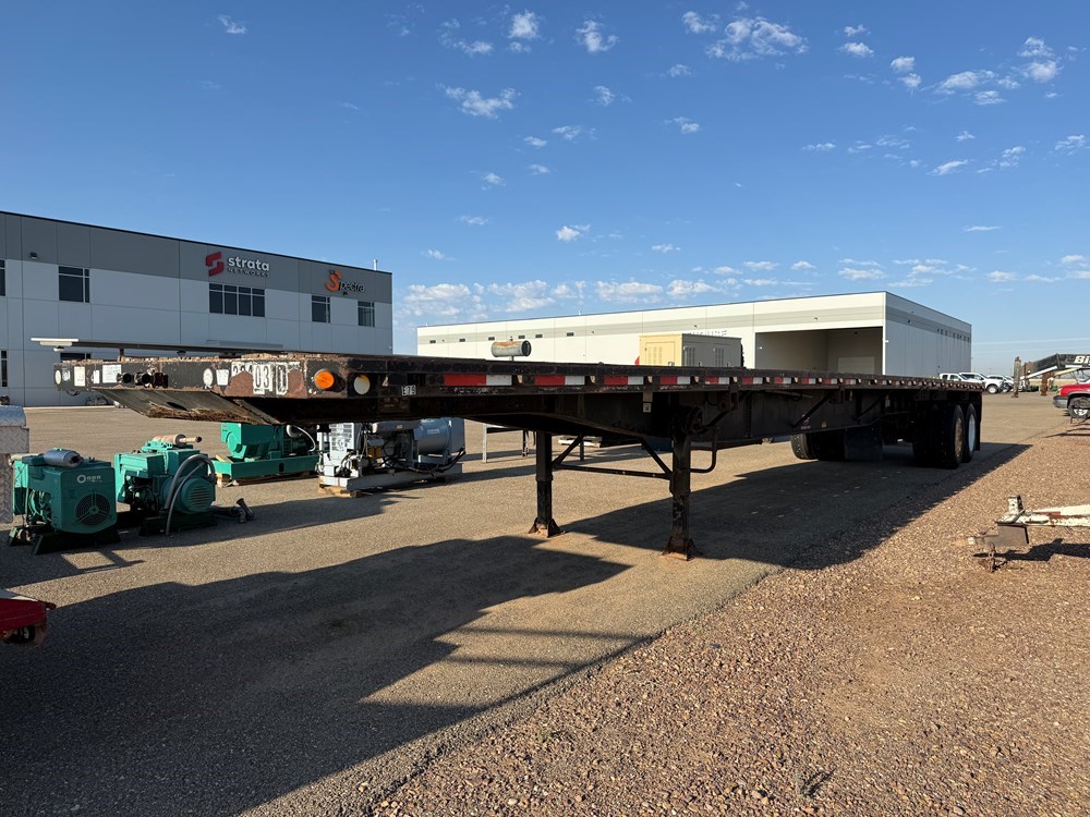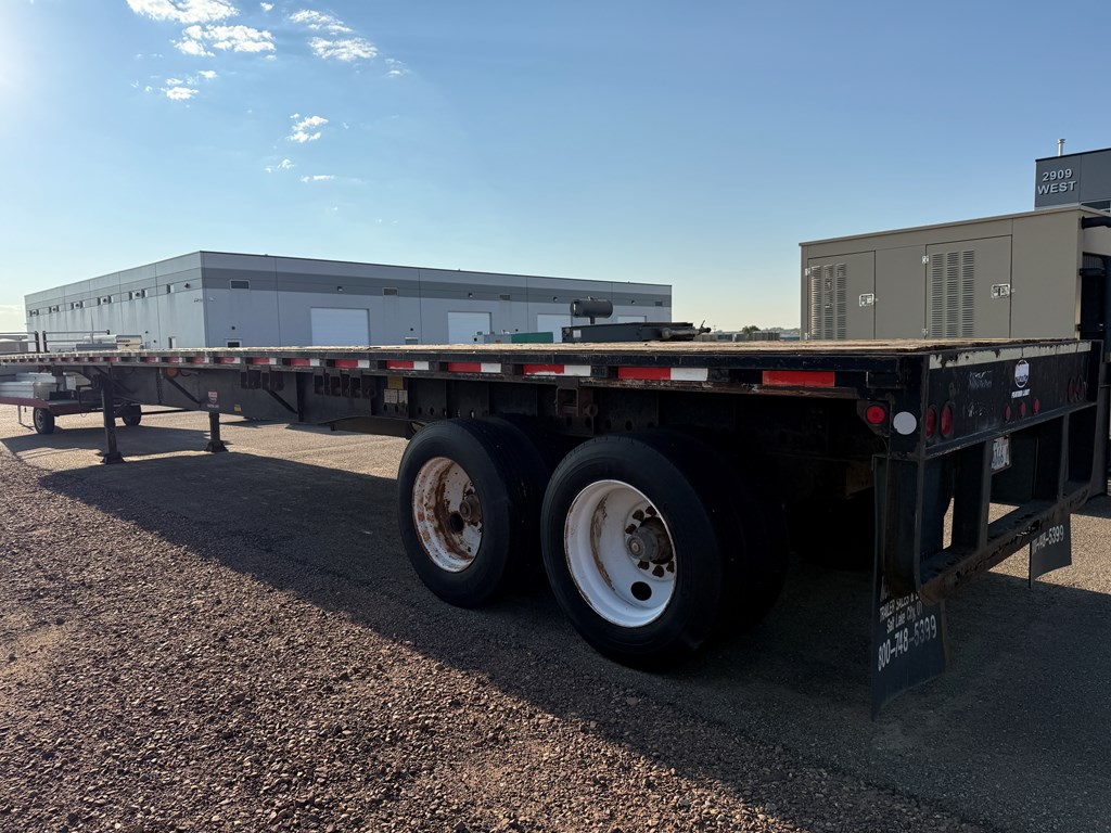 Flatbed semi-trailer with 8-foot by 48-foot deck. Condition consistent with age and use, with cosmetic wear and surface rust.