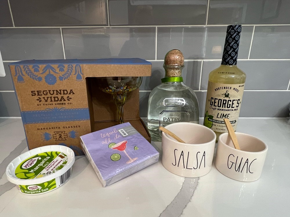 Margarita, anyone!? Serve up the best marg at home with everything you need, plus a bottle of the GOOD stuff! Basket includes a 1.75l bottle of silver Patron, Twine Segunda Vida set of 2 Artistico Margarita glasses, margarita salt and mix, cocktail napkins, and Rae Dunn salsa and guac serving bowls. Retail value: $185. Winner must be able to meet in the DMV for pickup - this item cannot be shipped.