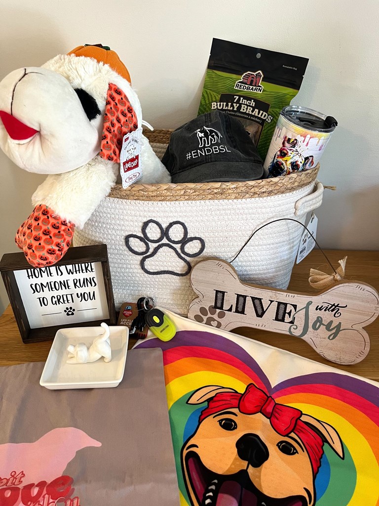 Celebrate the love and loyalty of house hippos with this "Pittie Mama" gift basket—perfect for any proud dog parent or pittie advocate! This thoughtfully curated basket includes gifts for both you and your pup: 🐾 End BSL Hat 🐾 “Pittie Mama” Throw Pillow Cover 🐾 “A Little Pit in Love With You” Throw Pillow Cover 🐾 XL Lamb Chop Plush Toy 🐾 Bully Sticks 🐾 Down Dog Jewelry Holder 🐾“Home is Where Someone Runs to Greet You” Sign 🐾 Dog joy sign 🐾 Pitbull facts drink tumbler 🐾Decorative storage basket Spread the love—and maybe even a little slobber—with this paw-some package! 🐶❤️ Retail value: $175. Winner must be able to meet for local DMV pickup or pay for shipping.