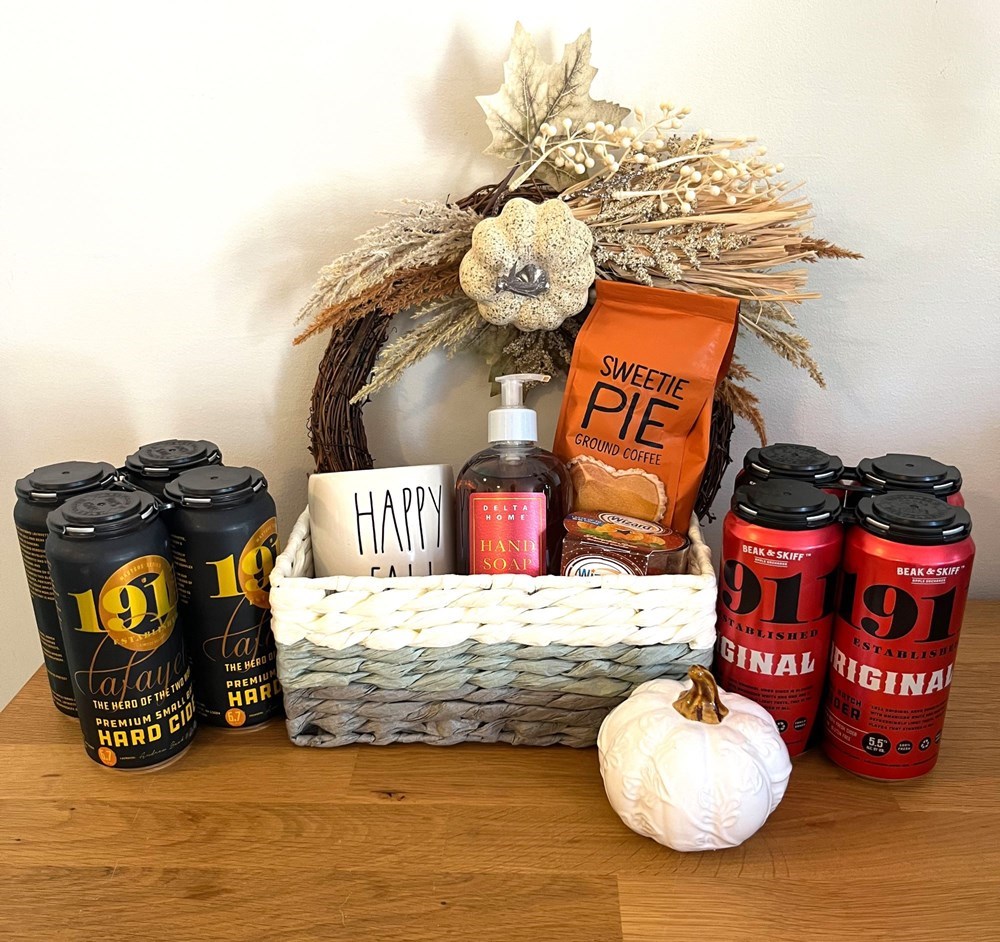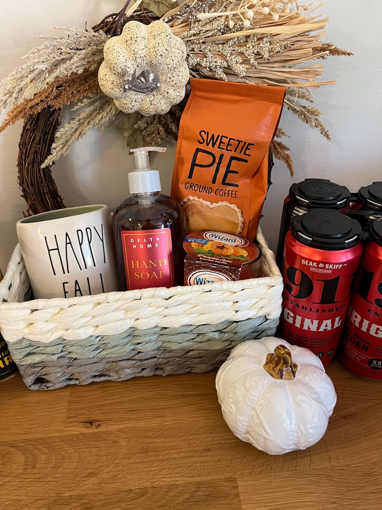 🍁 Cozy up for Fall and bid on this Autumn essentials gift basket Embrace the cozy comforts of the season with this charming Fall-themed essentials package! Package Includes: 🍂 Handmade Fall Wreath 🍁 Rae Dunn “Happy Fall” Mug 🧼 Fall-Scented Hand Soap. 🕯️ Pumpkin-scented Candle ☕ Pumpkin Pie Flavored Coffee 🎃 Decorative Ceramic Pumpkin 🍎 Two 4-Packs of 1911 Hard Cider This delightful collection is perfect for fall lovers, gift-givers, or anyone looking to add a little extra pumpkin spice and everything nice to their season! Est. retail value: $77. Winner must be able to meet in the DMV for local pickup.