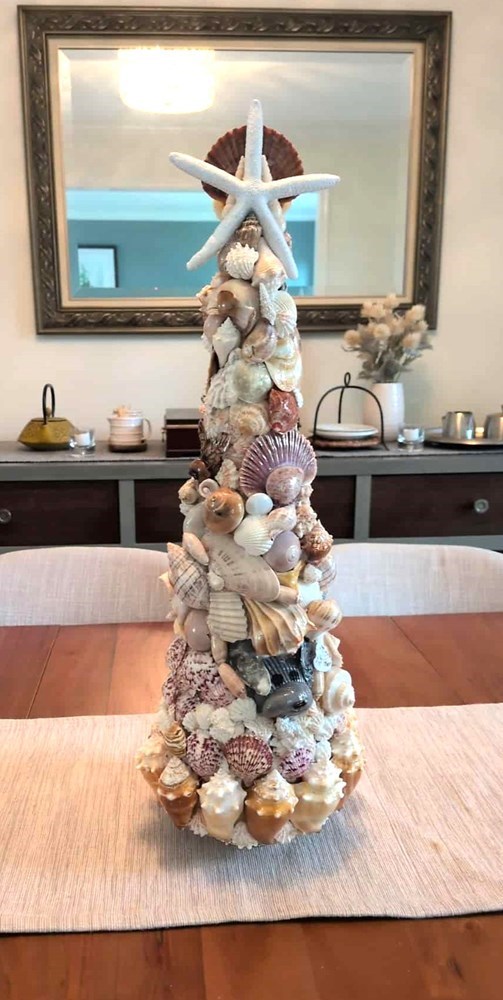 Bring your love for the shore into your decor with this beautiful handcrafted sea shell tree. Oh, and take a closer look and you'll find a few hidden dog faces, too! This coastal shell tree will make a beautiful holiday accent, hostess gift, beach wedding decor, table centerpiece, or year-round decor for any beach lover. Tree stands about 23 inches tall. Winner must be able to meet for local pickup in the DMV. Est. retail value: $120
